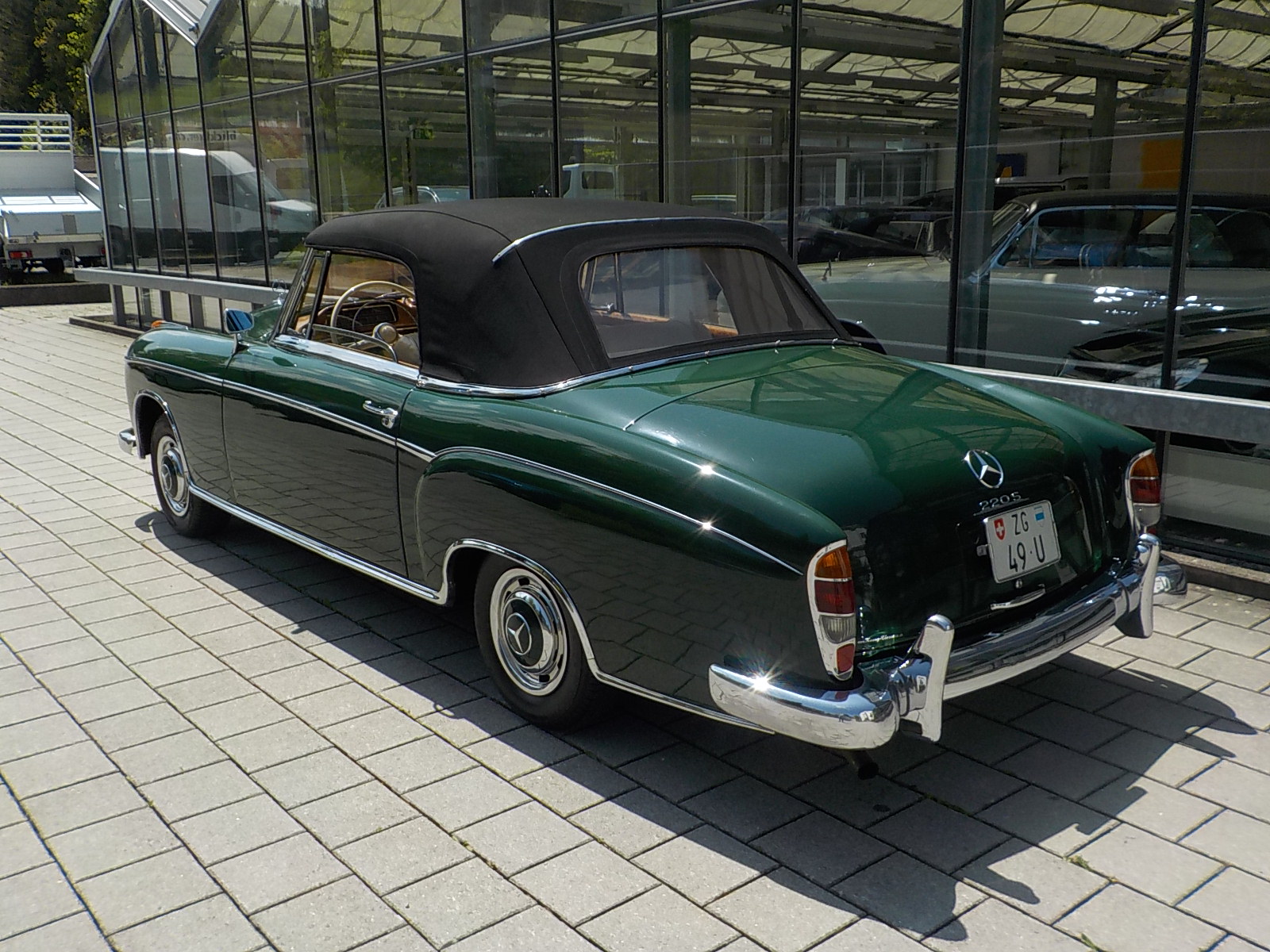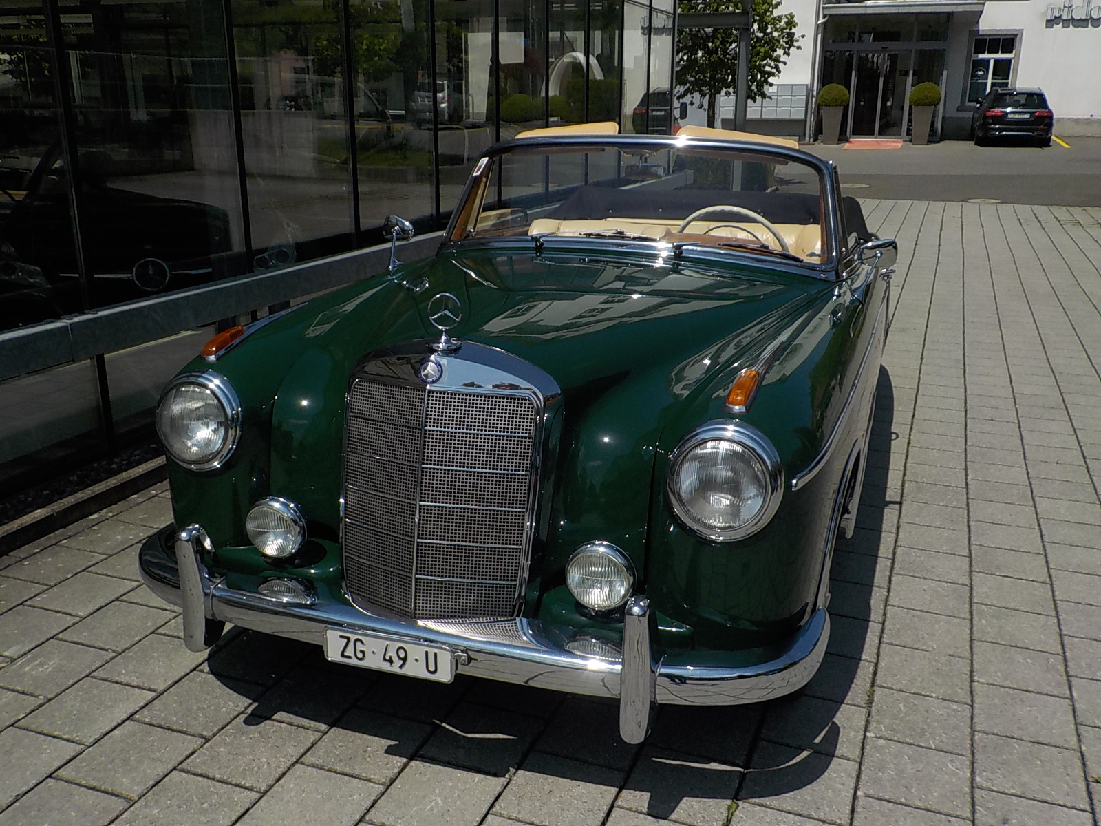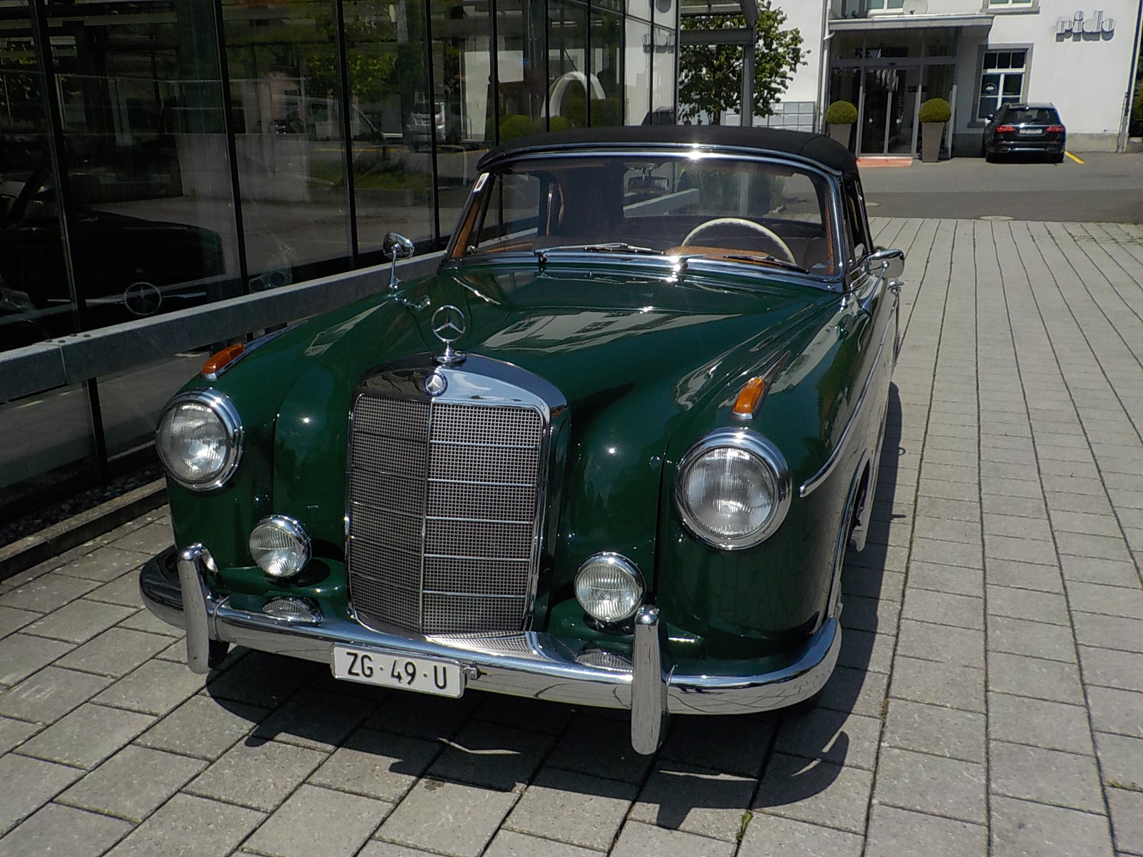 Mercedes-Benz Fahrzeuge gehörten von jeher zu den elegantesten Kreationen der zahlreichen Automobilbauer. Eine der besonderen Linien war die sehr erfolgreiche Ponton Form, die die geschwungenen Kotflügel des Vorkriegsdesigns abgelöst hatte. Eine neue Zeit war angebrochen. Im Besonderen verbindet man gerne die Ponton Coupés und Cabriolets mit Schauspielergrössen der Nachkriegsjahre. So mancher Film mit Heinz Rühmann, Inge Meysel oder Heinz Erhardt erinnert an die schöne Zeit und die damals so eleganten Automobile. Dieses Mercedes 220S Ponton Cabriolet wurde im Sommer 1958 an seinen Erstbesitzer im Rheinland ausgeliefert. Anfang der 90er Jahre kam es dann in die Schweiz. Ebenfalls in den Neunzigern, war dann eine Restauration fällig. Gute Arbeit wurde geleistet; denn auch noch heute kann die optische, sowie technische Befindlichkeit des 220ers als sehr gut bezeichnet werden. Er läuft auf Knopfdruck und erfreut den Fahrer mit seinem weich und samtig laufenden 6-Zylindermotor. Ausserdem ging im Mai 2023 eine neuerliche MFK-Veteranen-Prüfung, ohne Beanstandungen über die Bühne.
