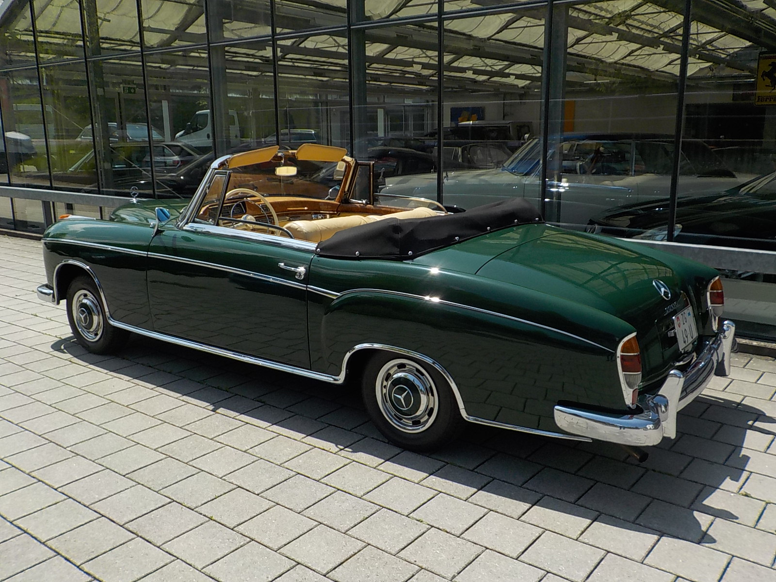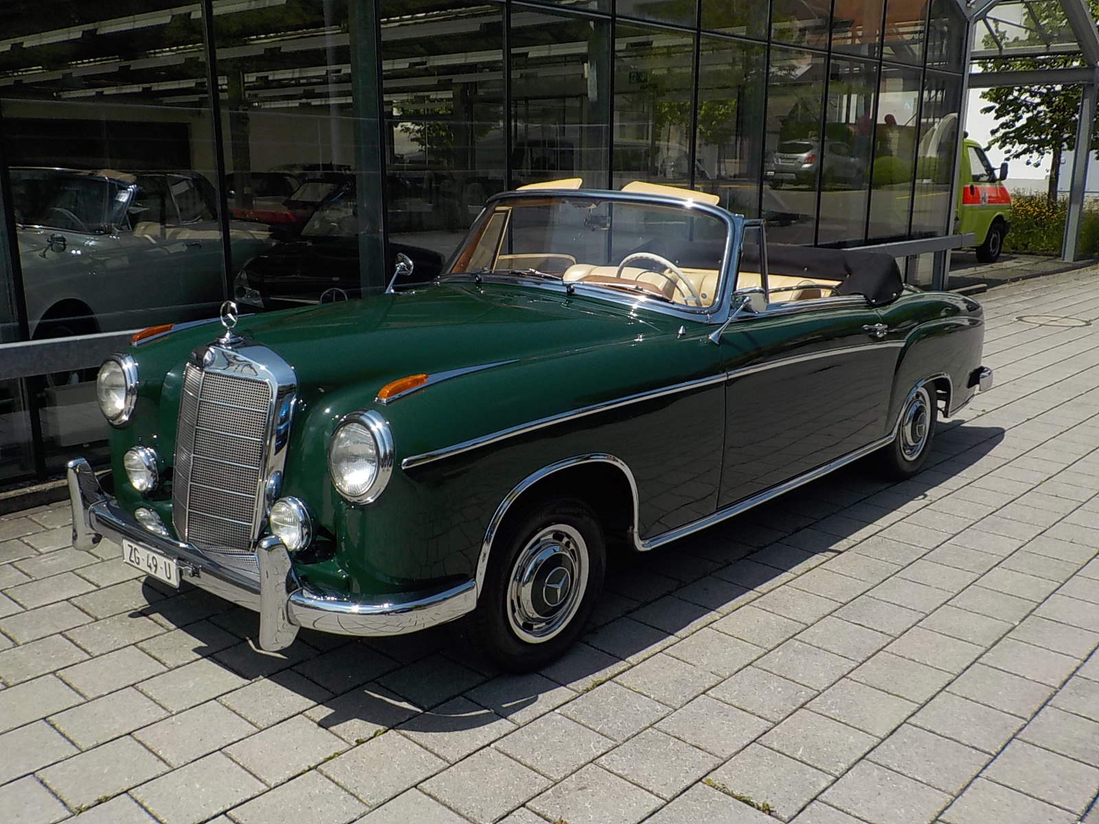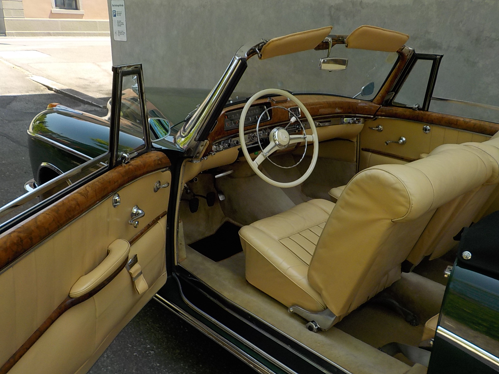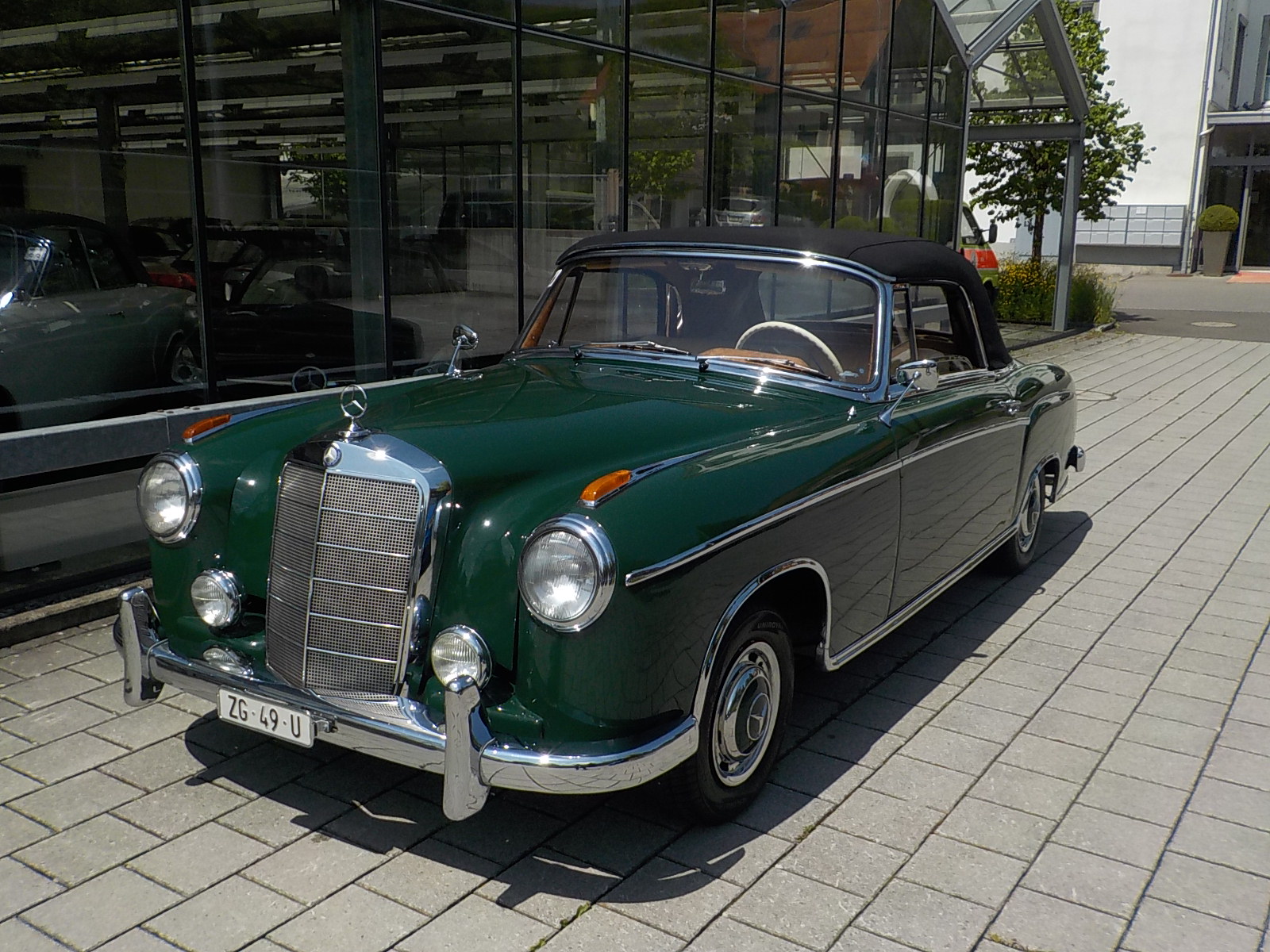 Mercedes-Benz Fahrzeuge gehörten von jeher zu den elegantesten Kreationen der zahlreichen Automobilbauer. Eine der besonderen Linien war die sehr erfolgreiche Ponton Form, die die geschwungenen Kotflügel des Vorkriegsdesigns abgelöst hatte. Eine neue Zeit war angebrochen. Im Besonderen verbindet man gerne die Ponton Coupés und Cabriolets mit Schauspielergrössen der Nachkriegsjahre. So mancher Film mit Heinz Rühmann, Inge Meysel oder Heinz Erhardt erinnert an die schöne Zeit und die damals so eleganten Automobile. Dieses Mercedes 220S Ponton Cabriolet wurde im Sommer 1958 an seinen Erstbesitzer im Rheinland ausgeliefert. Anfang der 90er Jahre kam es dann in die Schweiz. Ebenfalls in den Neunzigern, war dann eine Restauration fällig. Gute Arbeit wurde geleistet; denn auch noch heute kann die optische, sowie technische Befindlichkeit des 220ers als sehr gut bezeichnet werden. Er läuft auf Knopfdruck und erfreut den Fahrer mit seinem weich und samtig laufenden 6-Zylindermotor. Ausserdem ging im Mai 2023 eine neuerliche MFK-Veteranen-Prüfung, ohne Beanstandungen über die Bühne.
