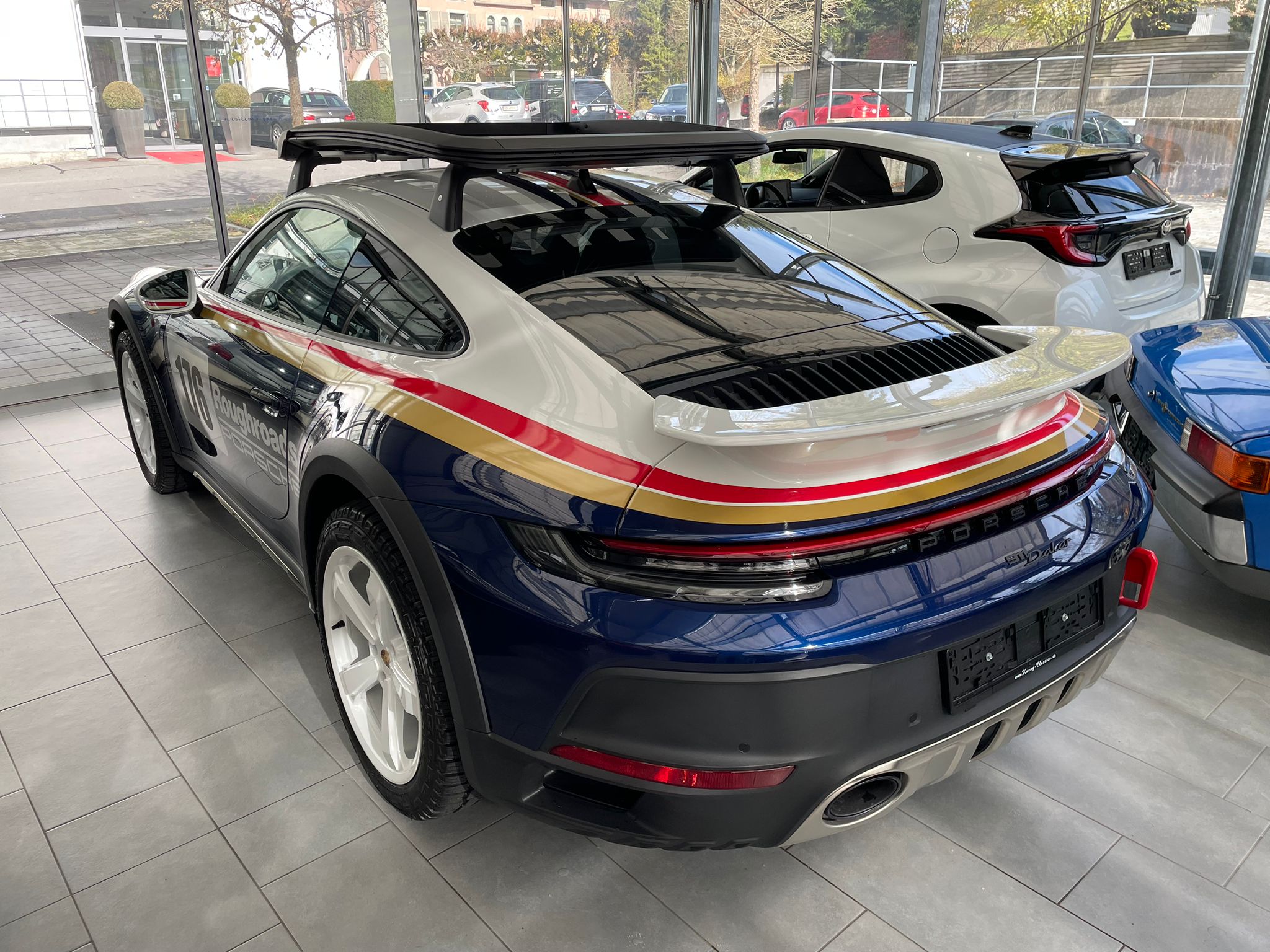 Der Porsche 911 Dakar ist kein gewöhnlicher Sportwagen – er ist eine Hommage an die legendäre Rallye Paris-Dakar und der Beweis, dass Performance keine Strassenbegrenzung kennt. Mit seiner erhöhten Bodenfreiheit, Allradantrieb und kompromissloser Porsche-DNA verbindet der 911 Dakar pure Sportlichkeit mit echtem Abenteuergeist. Kurz: Ein 911er für alle Wege, für Fahrer, die keine Grenzen akzeptieren. In diesem Falle mit einem Fahrzeug welches zwar Ende 2023 bereits zugelassen wurde, aber immer noch neu, im Sinne von ungebraucht ist.