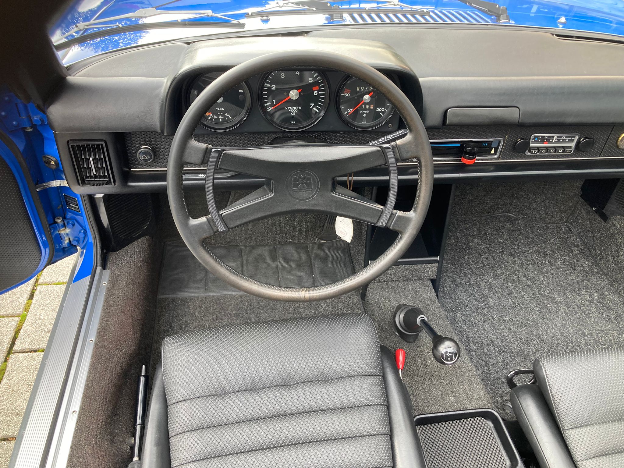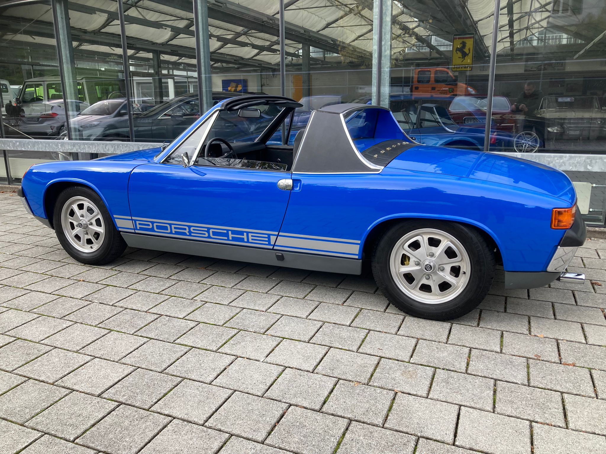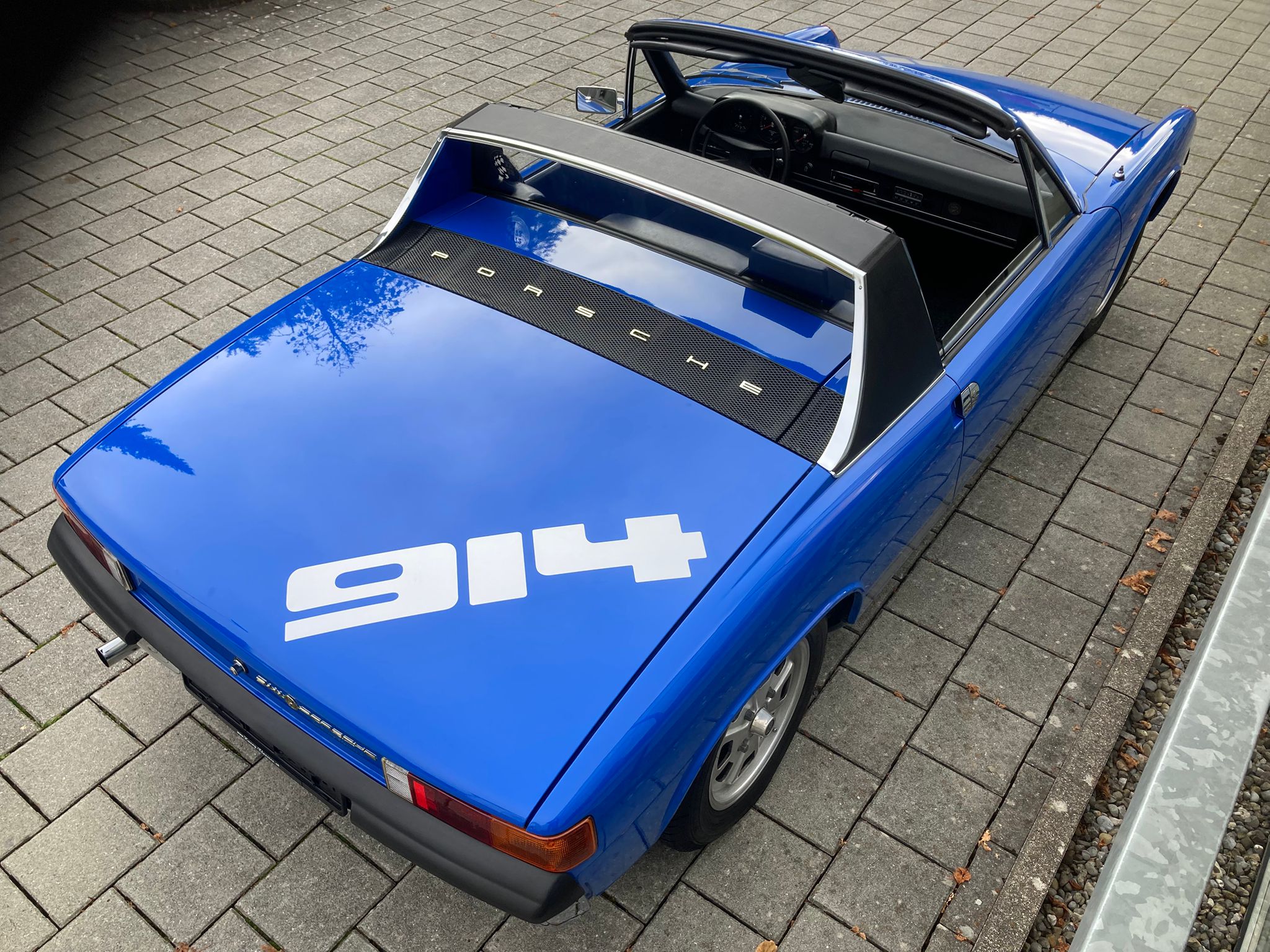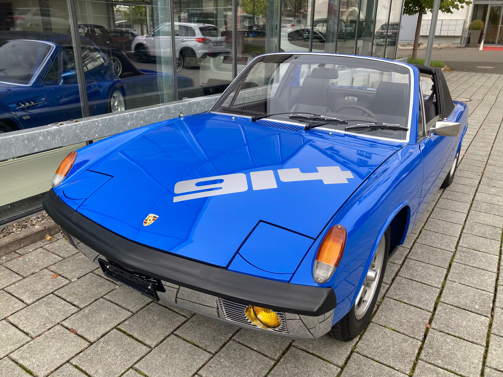 In der zweiten Hälfte der 1960-er Jahre suchte VW nach einem sportlichen Modell als Nachfolger des auf dem Käfer basierenden und damit als technisch veraltetet geltenden Karmann Ghia. Porsche fehlte ein preiswertes Einstiegsmodell, da 1965 der 356 eingestellt wurde und der 912 ein abgespeckter 911er mit dem 66 kW (90 PS) schwachen Vierzylinder des 356C sich gegenüber den Sportwagen der Konkurrenz nicht behaupten konnte. Ferry Porsche und der mit der Porsche-Familie eng verbundene VW-Chef Heinrich Nordhoff vereinbarten per Handschlag, dass Porsche sich mit seinem Sportwagen-Know-how an der Entwicklung eines gemeinsamen Modells beteiligt, das allerdings getrennt als VW-Variante und als Porsche-Fahrzeug vertrieben werden sollte. VW würde über einen hohen Absatz für geringe Fertigungskosten sorgen; Porsche sollte über die damit erreichbaren geringen Stückkosten für die Entwicklungsarbeit entlohnt werden. Die Fertigung der Karosserien sollte bei Karmann erfolgen. Es sah also nach einem perfekten Win-Win-Geschäft aus. Als am 1. März 1968 der erste 914-Prototyp vorgestellt wurde, war Nordhoff allerdings schwer erkrankt. Er verstarb am 12. April 1968. Sein Nachfolger bei VW, Kurt Lotz, war nicht mit der Porsche-Dynastie verbändelt und soll die mündliche Vereinbarung zwischen Nordhoff und Ferry Porsche nicht anerkannt haben. Er soll der Ansicht gewesen sein, VW habe alle Rechte an der Karosserie, weshalb Porsche sie allenfalls gegen Beteiligung an den Werkzeugkosten erhalten würde. Das Preis- und Vermarktungskonzept des 914 war damit bereits vor Beginn der Serienproduktion gescheitert. Als Kompromiss gründeten VW und Porsche Anfang 1969 für Marketing und Vertrieb des 914 die VW-Porsche Vertriebsgesellschaft GmbH (kurz VG), die bald vom Stuttgarter Porsche-Gelände ins nahegelegene Ludwigsburg umzog. In Europa wurde der Wagen daraufhin von der VG als "VW-Porsche" verkauft. Dies führte zur Verspottung als "Volks-Porsche" oder gar als "VoPo", obwohl der Marketing-Leiter der VG, Fritz Huschke von Hanstein, bei der Pressevorführung eindringlich gebeten hatte, diese Abkürzung der Volkspolizei der DDR nicht für den 914er zu verwenden. Bei dem hier angebotenen Fahrzeug handelt es sich um ein Fahrzeug mit dem 1,7-Liter-Motor mit Schweizer Erstauslieferung und garantiert erst 69000 Kilometern!